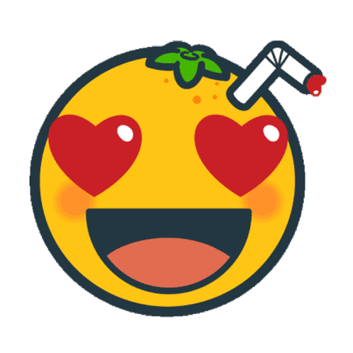 An adorable orange emoji with heart eyes, an open mouth, and a straw, panting with intense love and infatuation.