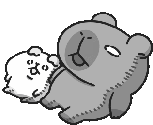 A charming animated sticker featuring 天竺鼠森森 (Sansan) the capybara and a smaller companion, both relaxing and lying down.