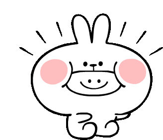A cute white rabbit character playfully bites the cheek of a round friend, then smiles adorably.