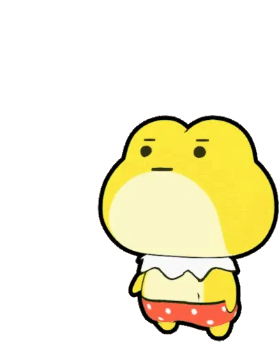 A cute yellow frog character performs a hypnotic gesture, inviting you to 'Look Me In The Eye' with its mesmerizing gaze.