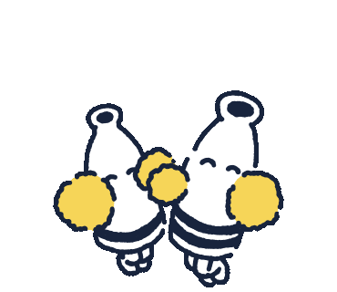 Two cute cartoon sake bottles with pom-poms cheer 'GOGO~!!', perfect for encouragement and fun.