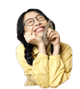 softpomz, a young woman, laughs happily while talking on the phone, expressing shyness and joy.