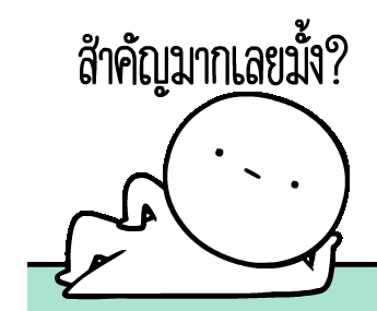 Cartoon character with a round head lying down, looking unimpressed, asking 'Is it that important?' in Thai.