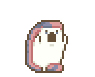 Kaiten Sushi-kun, a pixel art sushi character, performs a somersault and shows a shocked expression with an exclamation mark.