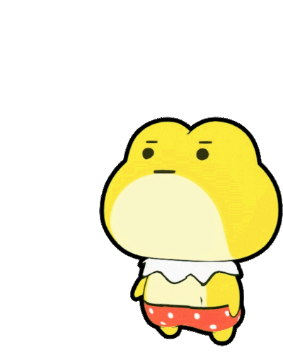 A cute yellow cartoon frog turns around, gives an 'OK' gesture, and the word 'OK' appears above its head.