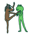 欢乐马踢打神经蛙,两个卡通角色进行搞怪互动,展现出活泼有趣的场景。
