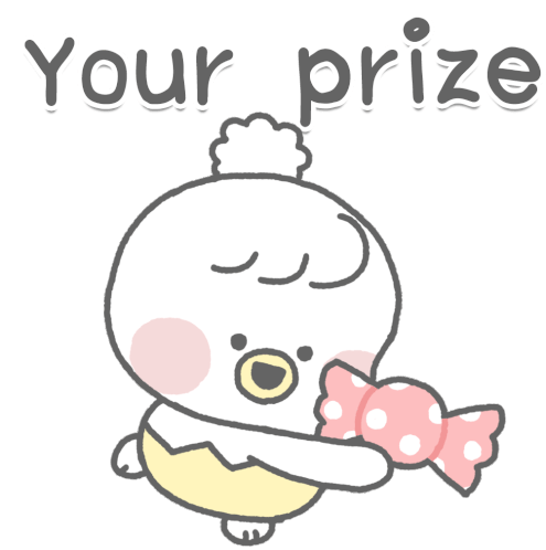 Cute chick character Piyomaru happily receives a sweet candy as a prize. A delightful reward for a job well done.