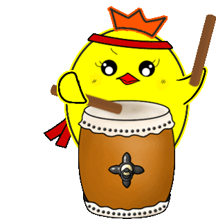Piyomi the cute chick enthusiastically plays a traditional Japanese wadaiko drum, celebrating with festive energy.