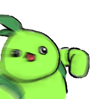 Mokoko, the adorable green character from Lost Ark, wiggles and smiles with its distinctive red mouth.