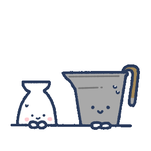 A cute animated sticker featuring a smiling junmai sake bottle (tokkuri) and a measuring cup peeking over a line.