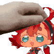 Suletta Mercury from Mobile Suit Gundam: The Witch from Mercury, a red-haired anime character, is playfully propped up by a hand.