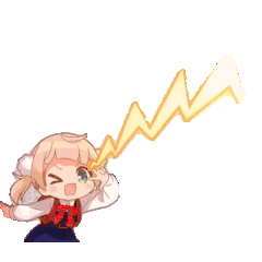 Energetic chibi anime girl striking an excited pose, ready to unleash an 'Ui Beam' with clenched fists.