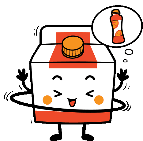 A cheerful juice box character happily hula hooping for fitness, dreaming of refreshing orange juice.