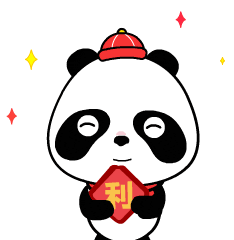 Cute panda celebrates Chinese New Year, holding red couplets wishing 'Everything goes smoothly' and 'Happy New Year' with a pig icon.