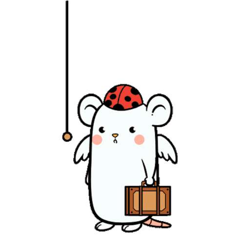a cartoon drawing of a mouse with a ladybug hat and the words good morning