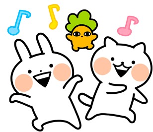 うさぎゅーん と ねこぎゅーん が音楽に合わせて楽しく踊る、陽気でキュートなアニメーションスタンプ。