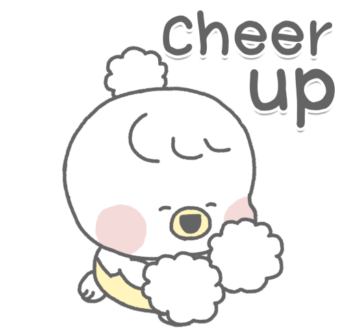 Piyomaru the chick cheers you on with pom-poms, saying 'Cheer up!' A cute and encouraging sticker.
