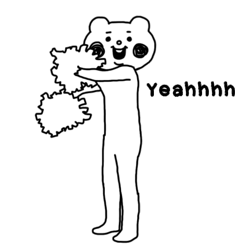 Betakkuma, the popular character, energetically dances with red pom-poms, cheering and moving wildly in a cheerleader outfit.