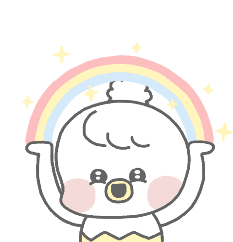 Piyomaru, the cute chick character, creates a vibrant rainbow with a happy smile, spreading peace and joy.