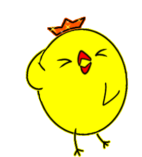 Piyomi the chick, wearing a crown, laughs shyly with a cute gesture.