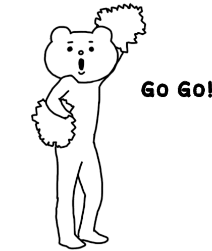 Betakkuma character enthusiastically cheers and dances with orange and white pom-poms, showing support and encouragement.
