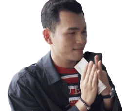 A man performs the traditional Thai Wai gesture of gratitude, accompanied by sparkling effects, conveying thanks.