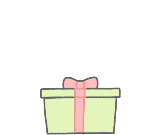 A cute white chick, Piyomaru, pops out of a green gift box with a pink ribbon, celebrating with "congrats!".