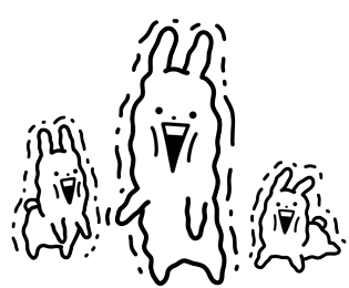 Three Usagyuuun characters are visibly shocked and surprised, with wide open mouths and wavy outlines, conveying disbelief.