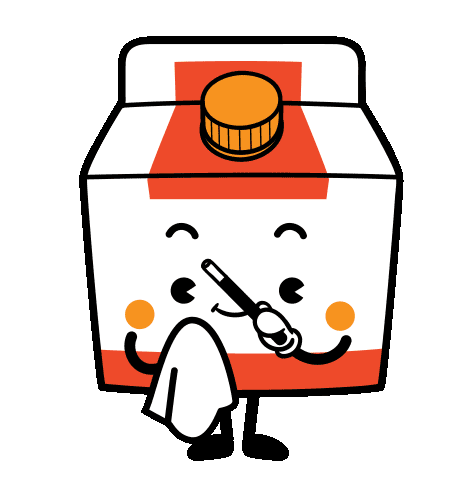 A cute orange juice box character, possibly Joo Joo by Chow Hon Lam, happily brushes its teeth with a toothbrush and towel.