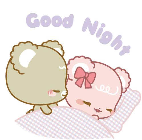 Sugar Cubs Mocha gives Latte a sweet goodnight kiss as Latte sleeps soundly in bed. A tender moment between the two adorable bears.