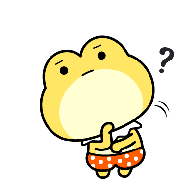 The adorable Frog Prince character, カエル王子, pondering with a question mark appearing, wondering 'What is it?'