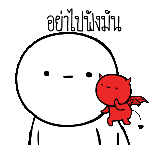 A round-headed character with a devil on its shoulder, advising not to listen to bad influences.