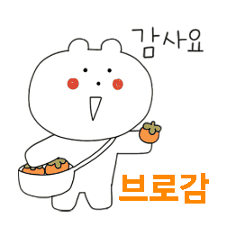 브로캡틴 브로대장이 오렌지 그릇을 들고 '감사합니다'라고 인사하는 귀여운 애니메이션 스티커.