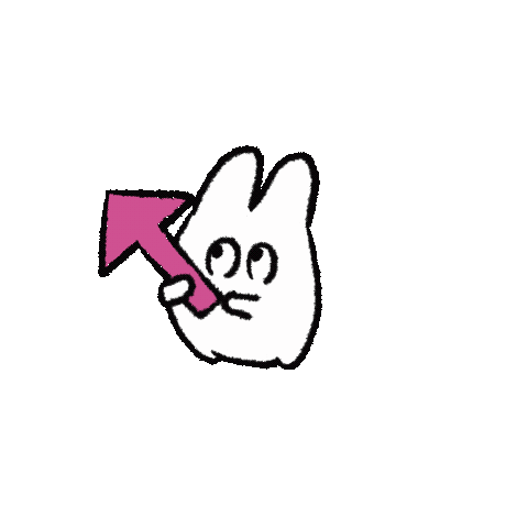 A cute cartoon rabbit, known as ニギリポロリステンテン うさぎ, wiggles a pink arrow held playfully in its mouth.