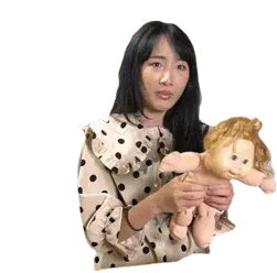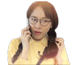 Softpomz reacts with excitement and shyness during a phone call, smiling broadly and touching her hair.
