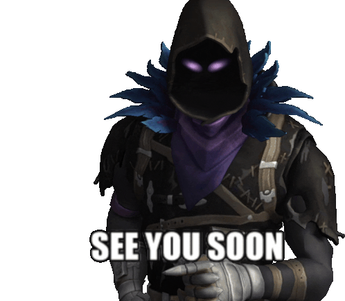 Fortnite's Raven character points forward with the message 'See You Soon'. Features elements related to Dj Khaled and Keanu Reeves.