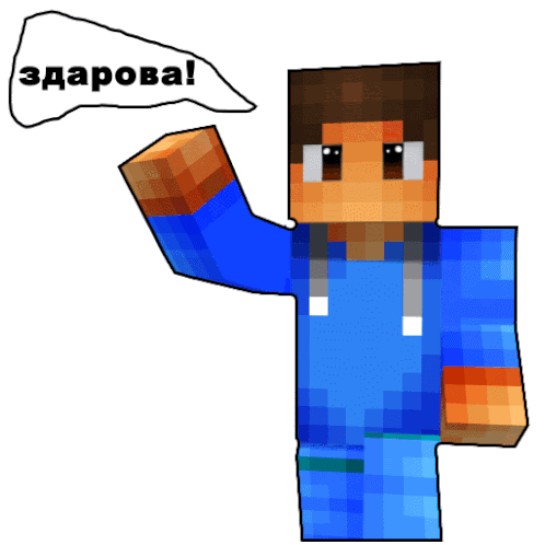 a drawing of a minecraft character with a speech bubble that says " здарова " on it