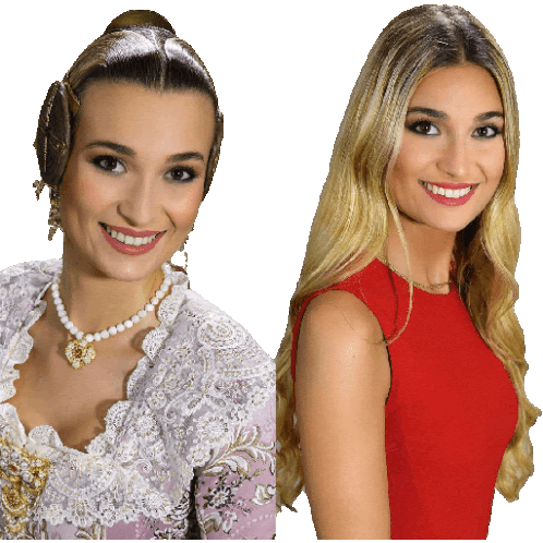 a woman in a white lace top and a woman in a red top