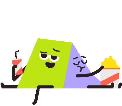 a cartoon illustration of a green and purple pyramid with a drink and popcorn