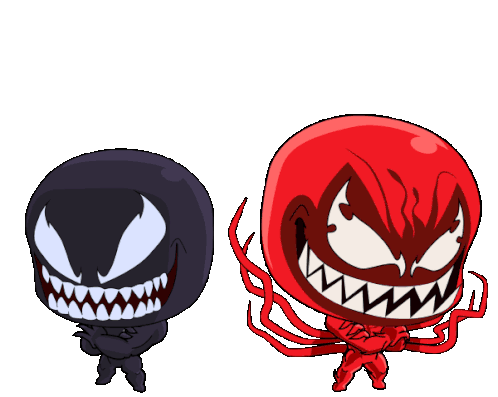 Chibi Venom and Carnage engage in a playful yet fierce tongue battle, showcasing their iconic symbiote abilities in a fun animated sticker.
