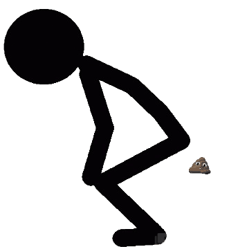 Animated stickman squatting and pooping a pile of brown feces, a humorous and absurd sticker.