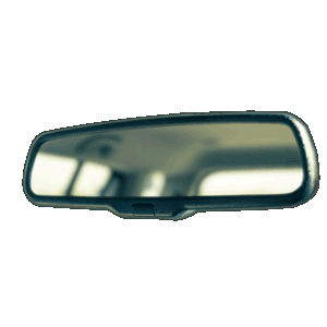 Carrie Underwood's lyric 'Still Shotgun Ridin In Your Head' appears on a car rearview mirror.