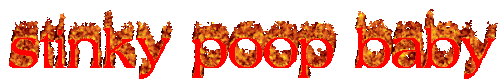 Animated text 'Stinky Poop Baby' appears in fiery, orange and red flames against a white background.