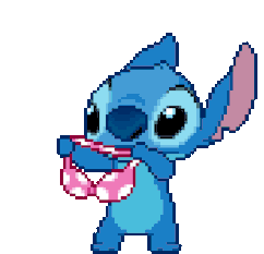 Stitch, the beloved alien character, adorably puts on a pink mushroom-shaped headdress, sparkling with cuteness.