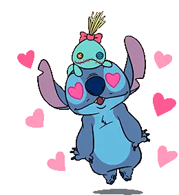Stitch, the blue alien, happily hugs a pink heart with "Hug hug" text above him.