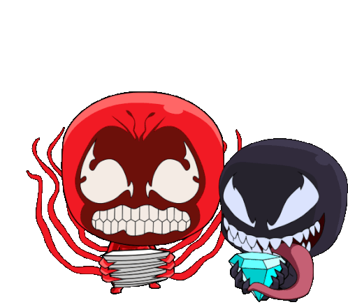Chibi Venom holds a diamond, while Carnage has paper hands, symbolizing stock market investment strategies.