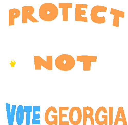 Animated sticker urging to 'Protect Not Guns' and 'Vote Georgia' to stop gun violence, featuring hands symbolizing protection.