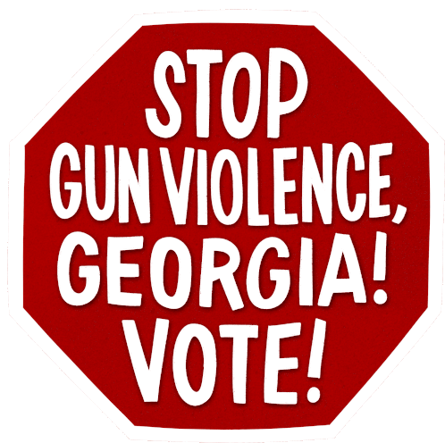 An impactful stop sign sticker urging 'STOP GUN VIOLENCE, GEORGIA! VOTE!' to promote awareness and action.