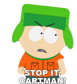 Kyle Broflovski from South Park angrily tells Cartman to "Stop It, Cartman!" in a classic animated moment.
