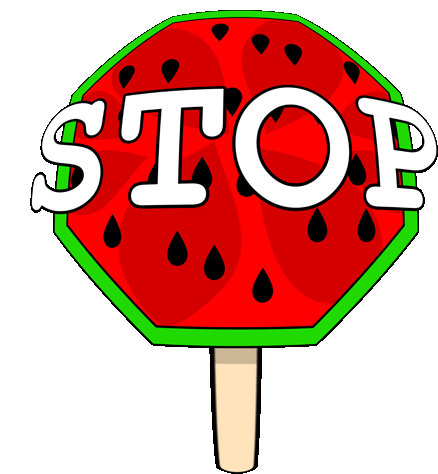A fun and colorful sticker featuring a stop sign designed as a watermelon popsicle, with the word 'STOP' clearly visible.